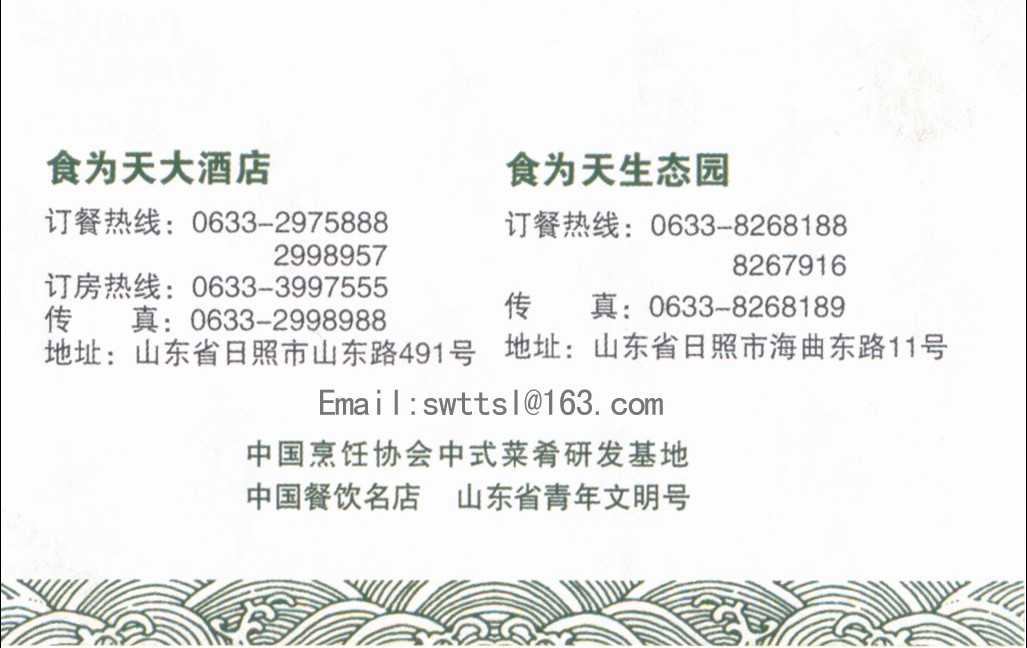 日照市食为天餐饮服务有限公司成立于2003年,现有员工200余人,下设食为天大酒店和食为天生态园。
