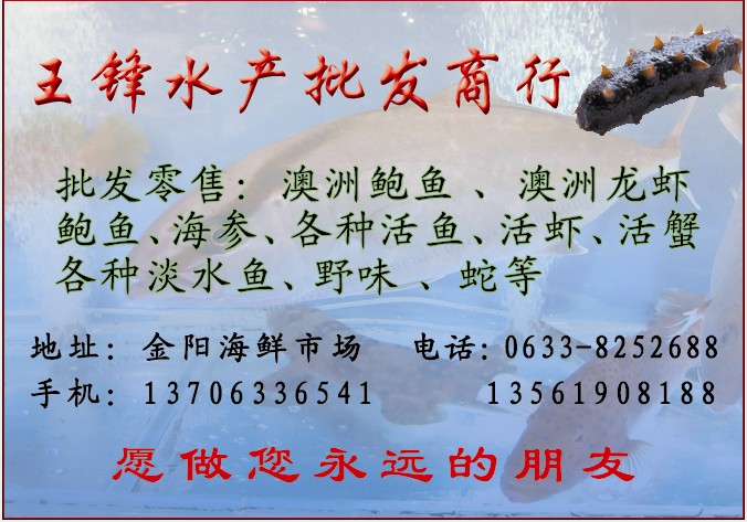 你好:我在县城有自己门面房,一直外租,今年提前离岗,想经营部分海产或水产,能否将海参、对虾、刀鱼、虾皮等几种主要产品批发价(大略)透露一下,过几天我会去日照考察联系你。拜托!邮箱dwgqsh@163.con