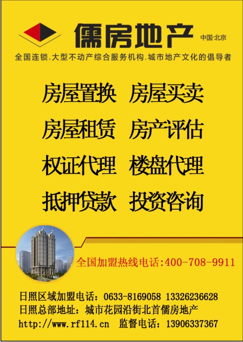 北京儒房房地产经济顾问有限公司是在“日照日房置换”“山东鲁房置换”两大品牌的基础上,在北京成立的中国大型不动产综合服务商、全国连锁机构。仅在全省就设立了500家连锁店。2000人的经济队伍。真正形成了“一人委托。百店服务、千人效力”的网络平台,做到了全省各地“处处有置换、店店有销售”的经营格局;实现了渠道水自成的置换营销体系,并创造出一套适合国内三线城市二手房中介公司发展的、具有自主知识产权的房产置换营销“联动模式”。 |