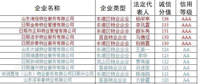 关于日照市2017年度物业服务企业信用综合评价结果的公示