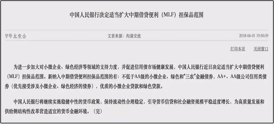 央行这则消息的意思,是说担保品的范围扩大,不再只局限于之前的国债、地方政府债、AAA级企业债。简言之,就是大中银行能更便利地向央行借钱了,最终市场上的钱会多起来。