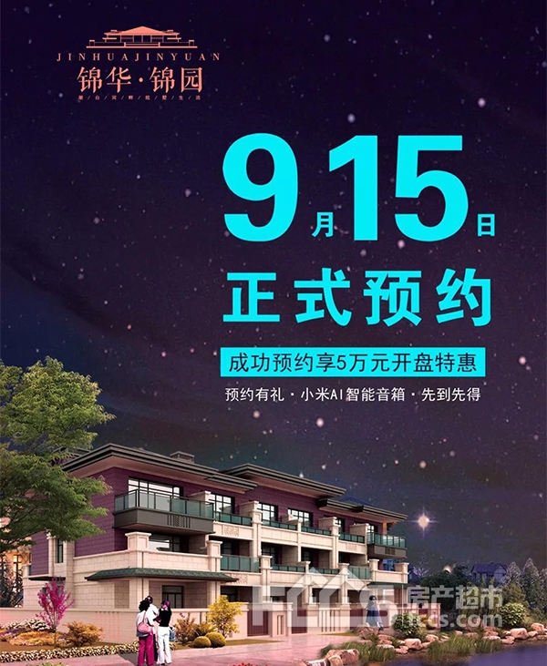9月15日,锦华·锦园正式预约,成功预约可享5万元开盘优惠!送小米AI智能音箱,数量有限,先到先得!