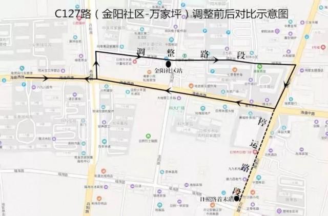 调整后日照方向起讫站点变更为金阳社区,其他运行路段不变。首末班时间及班次:金阳社区首班时间6:20,末班时间16:00;万家坪首班时间:7:10,末班时间17:00;日运行班次10班。