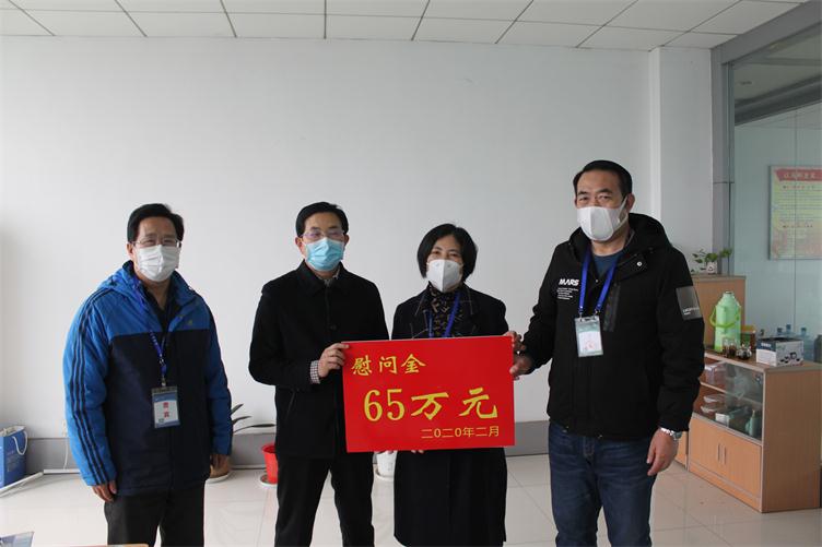 2月5日下午,市人大常委会副主任、市总工会主席李崇禧,市总工会党组书记、常务副主席李登来专程来到三奇公司工会,给坚持生产岗位,努力生产口罩的三奇员工送来了65万元慰问金,以示关怀,表达了日照市总工会和全市职工的心意。对此,三奇公司总工会主席徐从娟对市总工会的关怀支持表示深深地感谢!