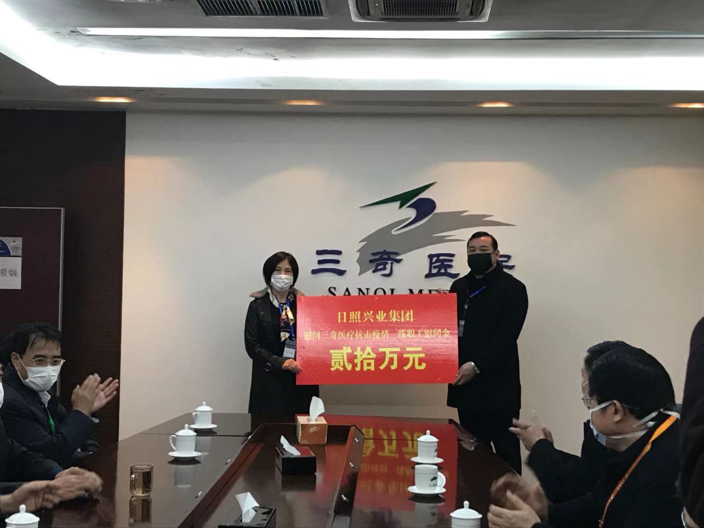 快讯:今天,日照市慈善总会给日照三奇医疗卫生用品有限公司捐赠50万元善款,对战斗在抗击疫情前线、做好医疗物资供应的三奇公司全体职工表示支持。(供稿:王长坤)