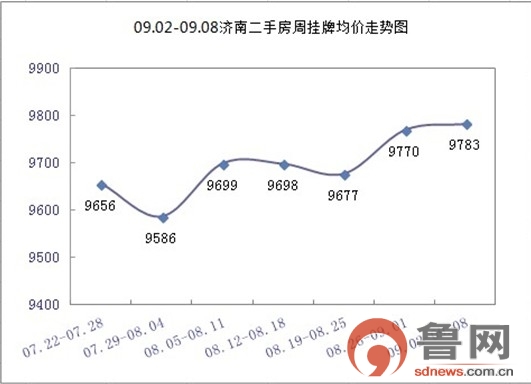 9月初,楼市销售的旺季已经悄然到来,记者了解到,上周济南二手房住宅挂牌均价再创历史新高,为9783元/平方米。环比前一周上涨13元/平方米,涨幅为0.13%。从9月首周各区县住宅挂牌均价来看,济南六大主城区住宅挂牌价格五涨一跌,济南二手房市场持续升温。