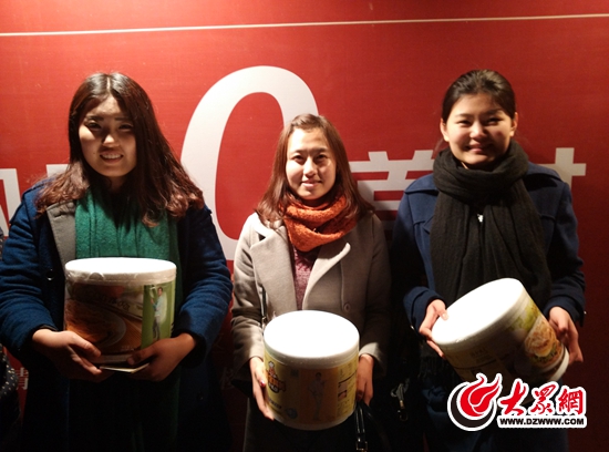 三位一起游园的女士均获得了手抓饼奖品