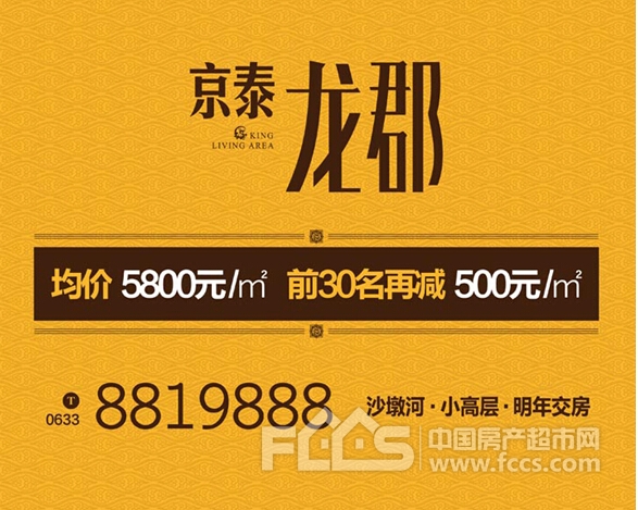 京泰·龙郡稀 缺水岸小高层开盘在即,80-102㎡经典户型准现房发售,均价5800元/㎡,前30名再减500元/㎡,恭迎品鉴:0633-8819888。 |