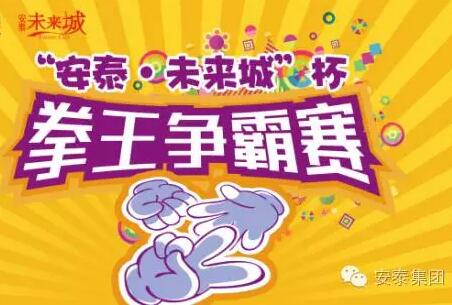 “安泰·未来城”杯拳王争霸赛将于5月21日晚在安泰·未来城售楼处举行,赶快报名吧!活动现场有震撼的激光舞表演,到场参与活动的市民还能免费参与到抽大奖活动中!液晶电视、山地车等奖品等你拿!