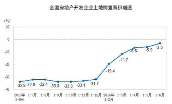 数据显示,1-6月份,房地产开发企业土地购置面积9502万平方米,同比下降3.0%,降幅比1-5月份收窄2.9个百分点;土地成交价款3159亿元,增长10.2%,增速提高5.5个百分点。