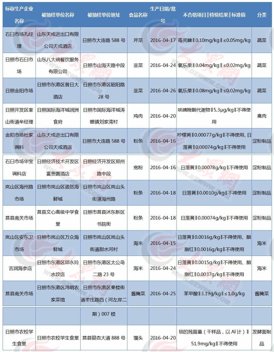山东二季度餐饮抽检结果出炉 日照多企业上黑名单