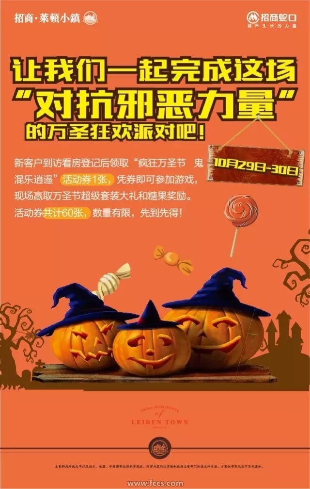 11月29-30日, 招商·莱顿小镇为来宾们准备了万圣节游戏,通过科学实验,外加魔法,研制了许多甜蜜糖果和炫酷的万圣装备给孩子们,每个任务过程中,怪物们布下魔法、诱惑,阻止我们通向胜利,需要我们勇敢前进,才能集齐10颗糖果,打败终极大怪兽。让我们共同来参与这场万圣狂欢派对吧!