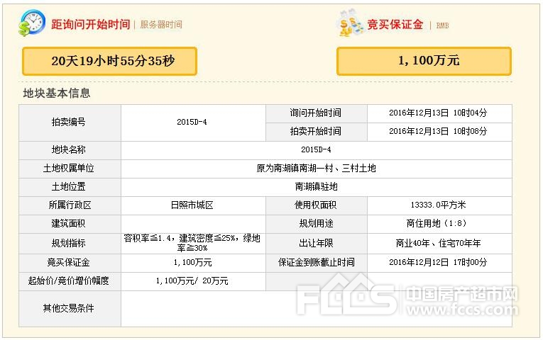 日照城区12月13日将拍卖四宗地块 两宗商住用地