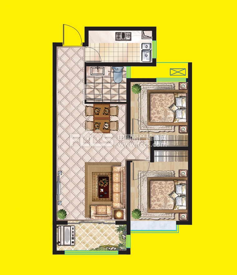 推荐户型:85.95平米,2室2厅1卫