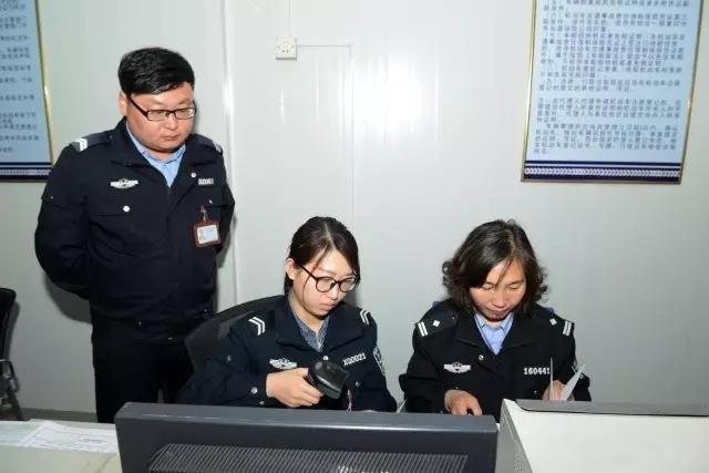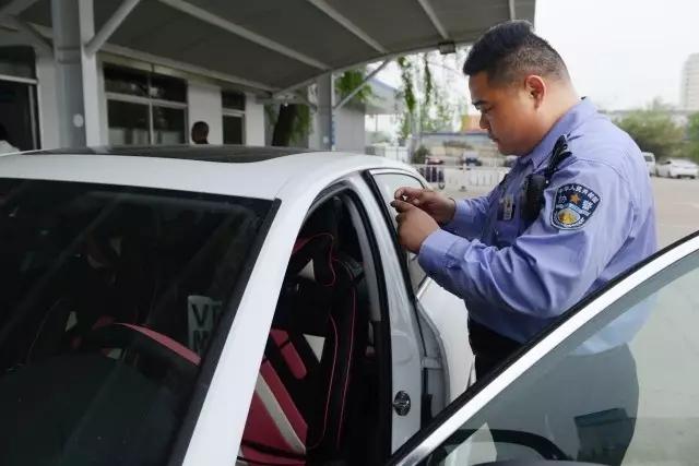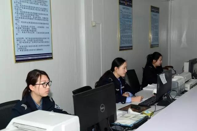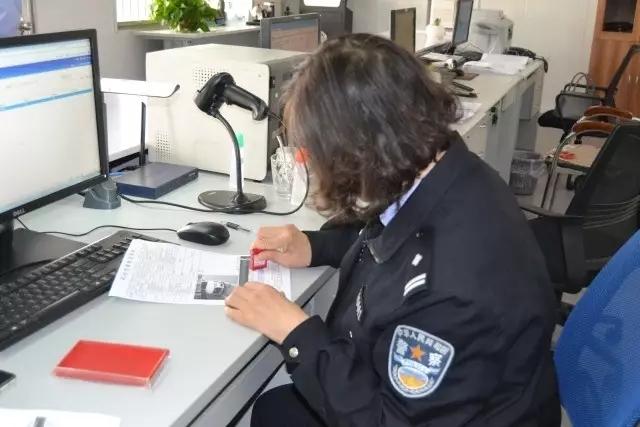受理岗: 民警 在核对车辆信息并完成系统录入工作