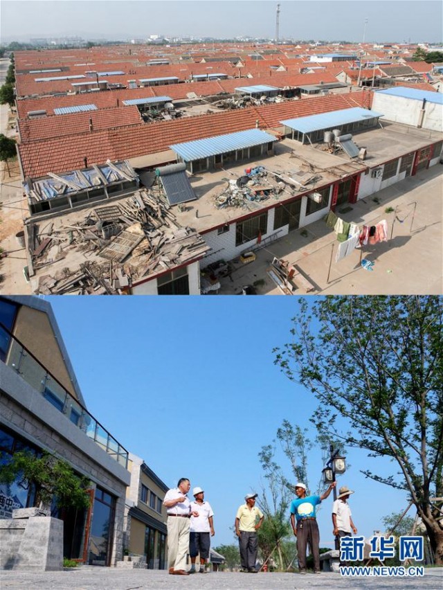 上图为日照市秦楼街道董家滩村一角(2012年6月4日摄);下图为原董家滩村村民相约来参观已经建好的东夷小镇,感受家园巨变(7月11日摄)。