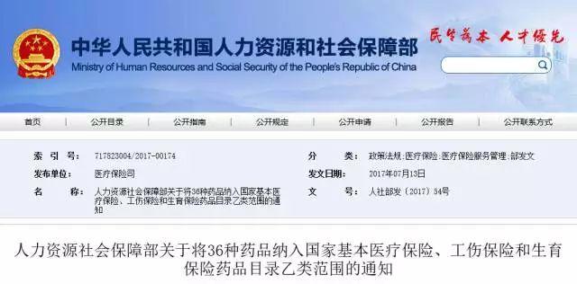 36种药品正式纳入国家基本医疗保险、工伤保险和生育保险药品目录乙类范围